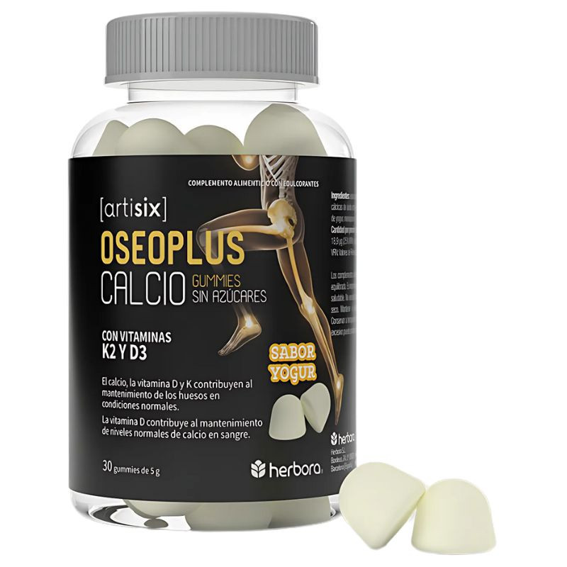 Calcio, Vitamina K2, Vitamina D3, edulcorantes (maltitol y sorbitol), agua, gelificante (gelatina), acidulante (ácido cítrico) y aroma (yogur).Modo de Empleo: